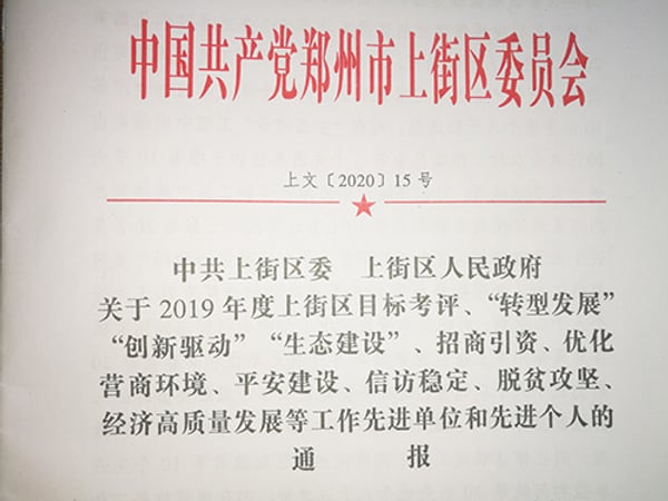 4月29日,上街区2019年度工作总结表彰暨“美丽上街”建设推进大会在上街区会议中心隆重召开。郑州万谷机械股份有限公司作为被表彰的“科技创新先进单位”出席会议。