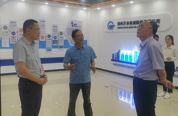 7月5日,郑州市粮食和物资储备局党组书记、局长李文岭莅临郑州万谷调研企业发展现状,上街区粮管中心主任吴向锋、公司董事长陆学中全程陪同。