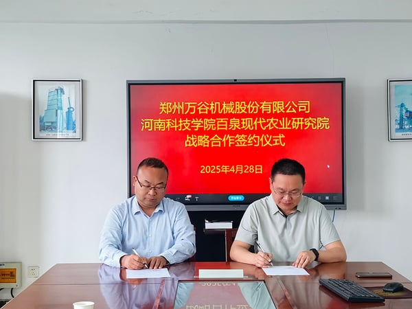 2025年4月28日,河南科技学院科技处处长、资源与环境学院院长、百泉现代农业研究院执行院长刘润强教授一行莅临郑州万谷机械股份有限公司。